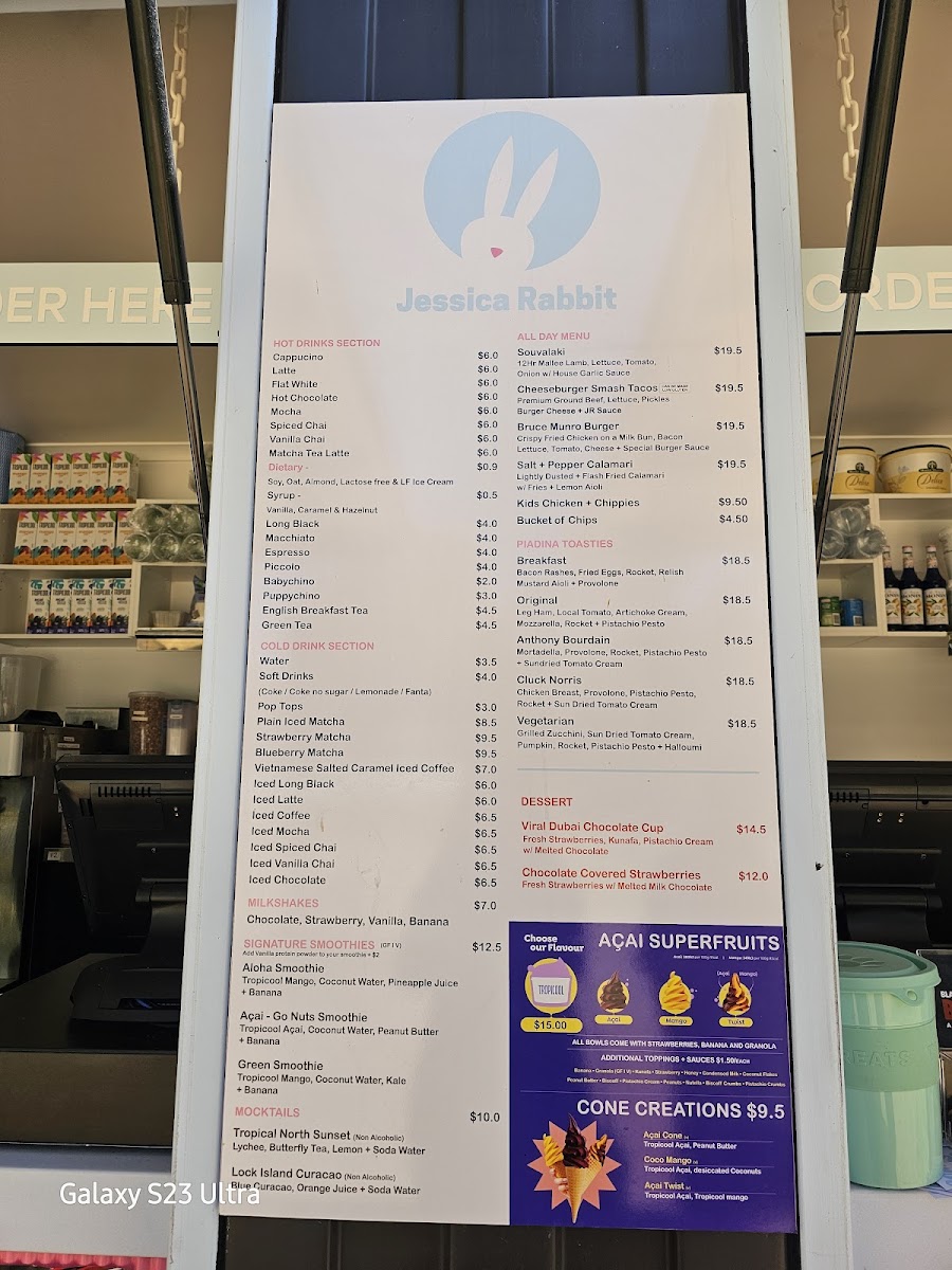 The menu at this cafe is structured to accommodate a range of dining occasions, from breakfast to light meals and dessert. It features several distinct sections to help visitors navigate the offerings efficiently.